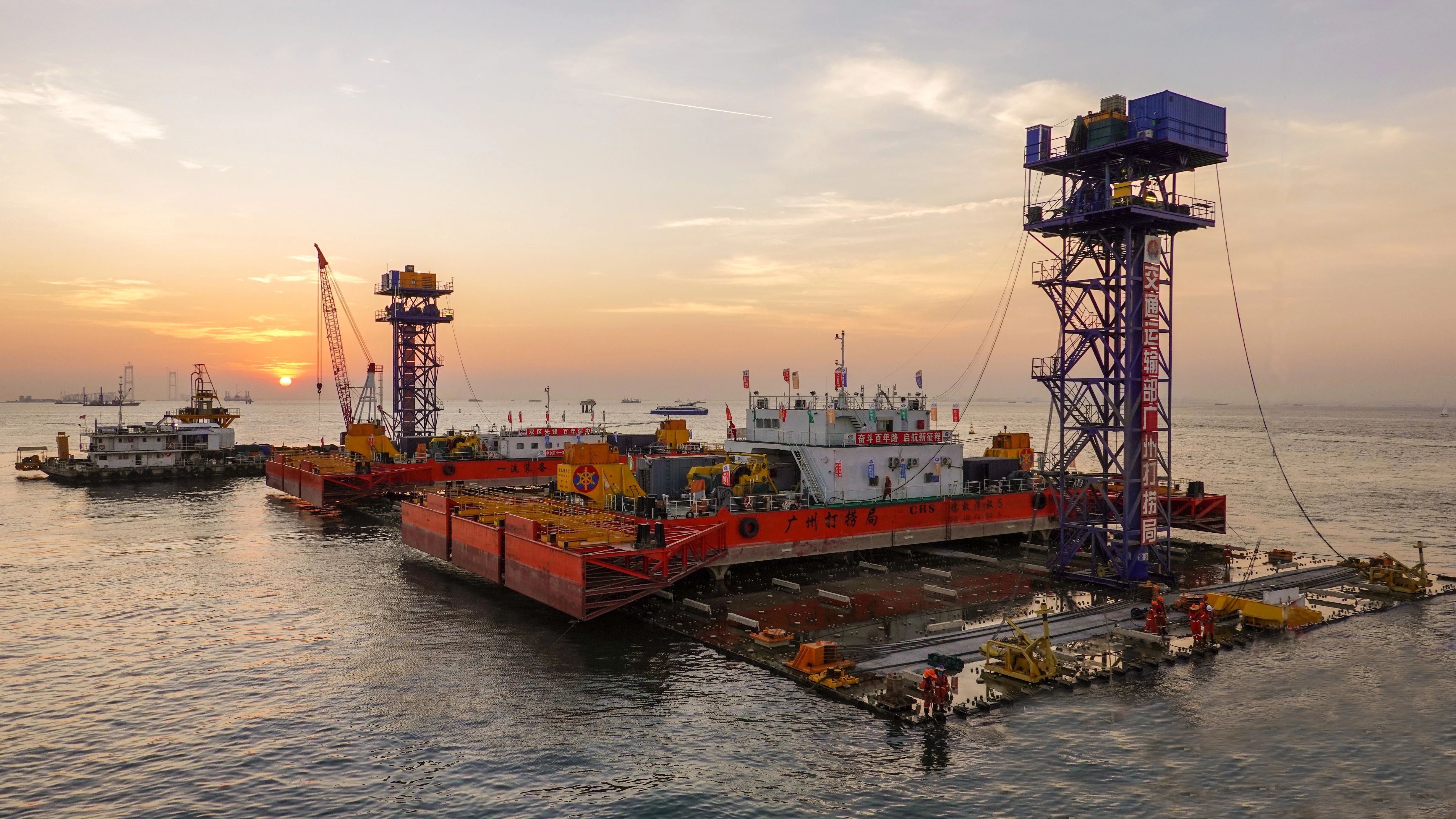 11月28日凌晨,在广州打捞局总马力超44000匹共9艘拖轮提带下,E29管节自广州南沙龙穴港池出发前往隧址。11月28日15时,E29管节跨越珠江口最繁忙的伶仃航道和矾石水道,顺利抵达隧址,并开展管节系泊、绞移等工作。