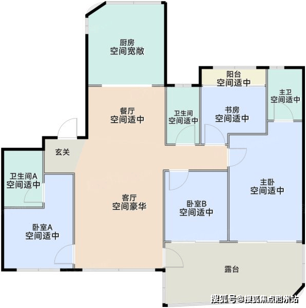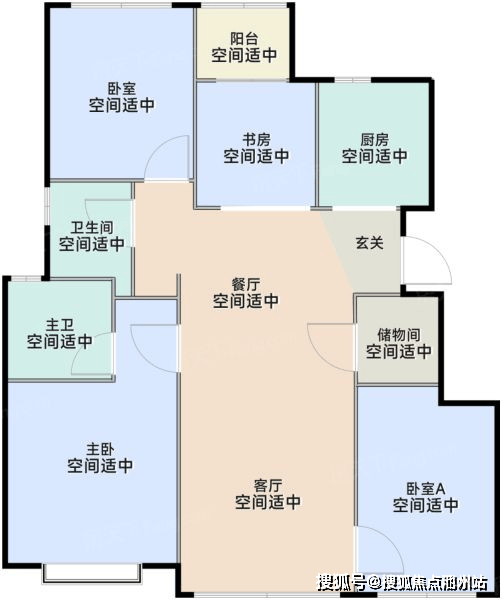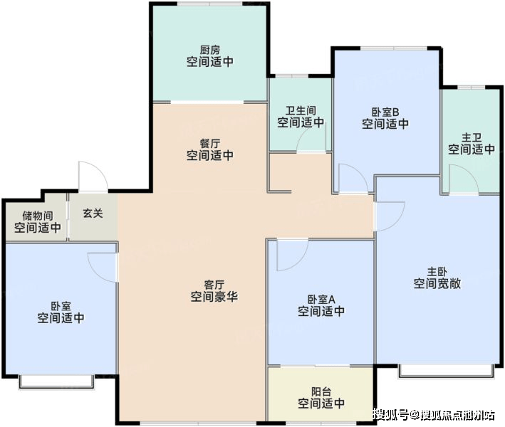 129平,得房率约88%,独立电梯厅,层高3.15米,四开间朝南户型设计