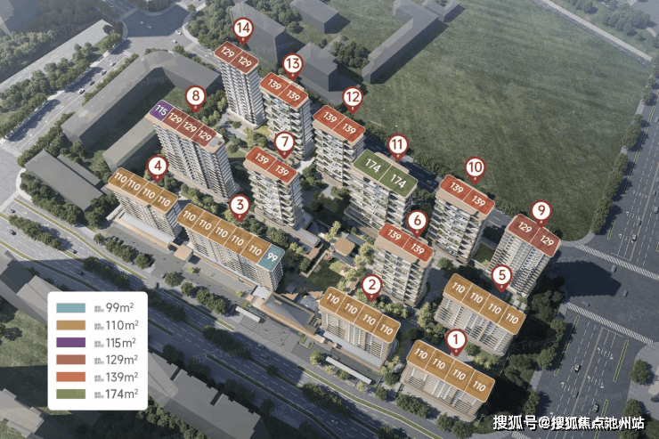 6-14号楼总高15-16层小高层,主力户型129平、139平四代宅、174平四代宅