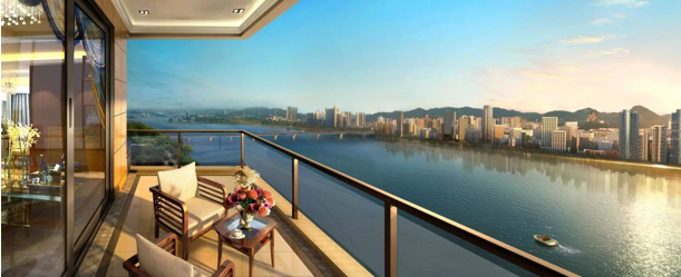 影响房子价值的因素很多,“景观”就是重要的因素之一。楚天御府·观澜,秉承尊重环境的前提下景观资源较大化的设计理念,高低分区,沿江岸线形成退台式布局。270°环幕阳台犹如一个大型“观景台”,IMAX级开阔景观视野,容得下定制加长版迈巴赫的尺度,更能展现稀缺生态资源优质的一面。