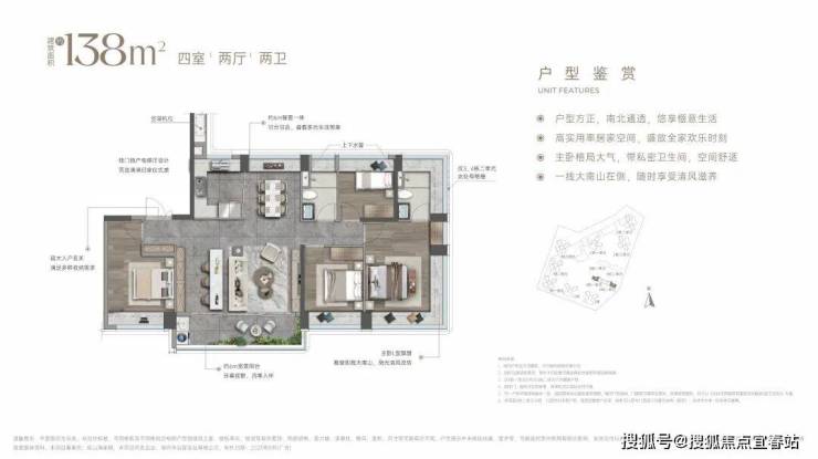 超长面宽采光:约15.5m南向四开间,将家的尺度极致放大