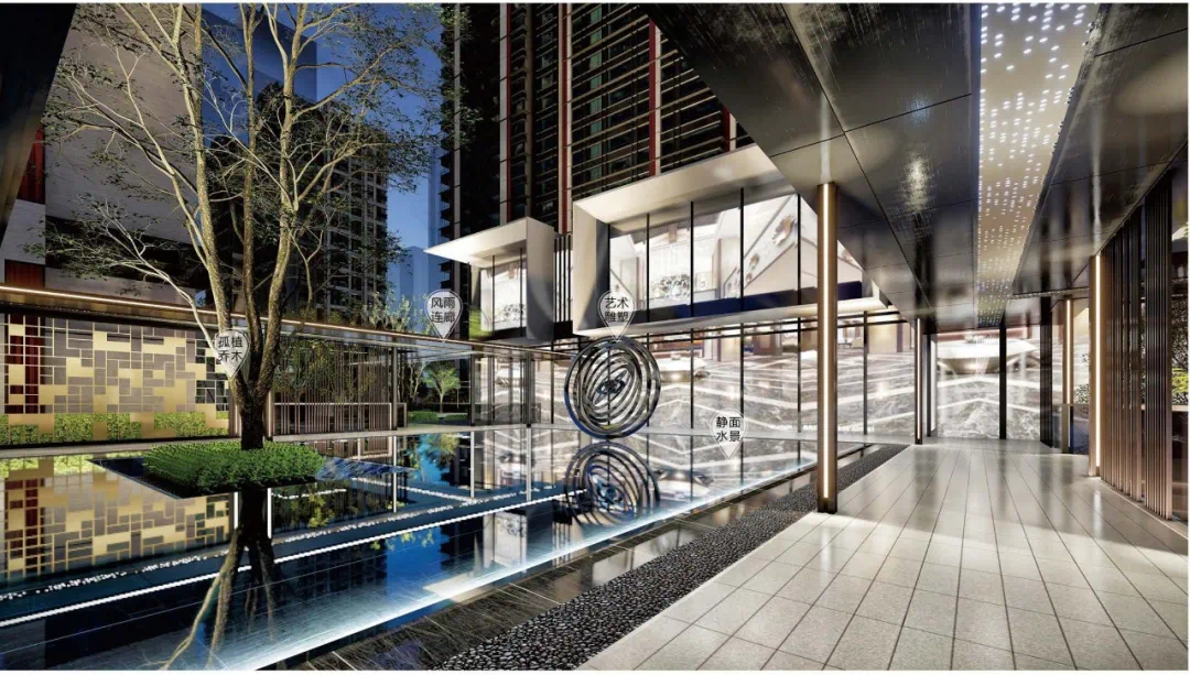 5、现代轻奢风园林:社区园林采用现代轻奢风格,规划中庭景观,将艺术展品融入现代园林中,为业主创造优美、舒适的居住环境。