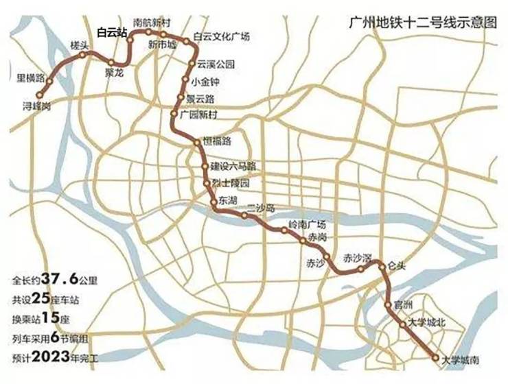 广州地铁12号线计划于2025年6月开通初期运营,其西北-东南走向串联白云新城、二沙岛、大学城等核心区域,并途经白云站TOD。开通后,白云站将实现与市中心、科创高地的快速直达,进一步扩大客流辐射范围。