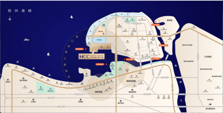 HCC恰处于海甸岛连接对岸的两条跨海通道中间,再次奠定项目湾芯地位。