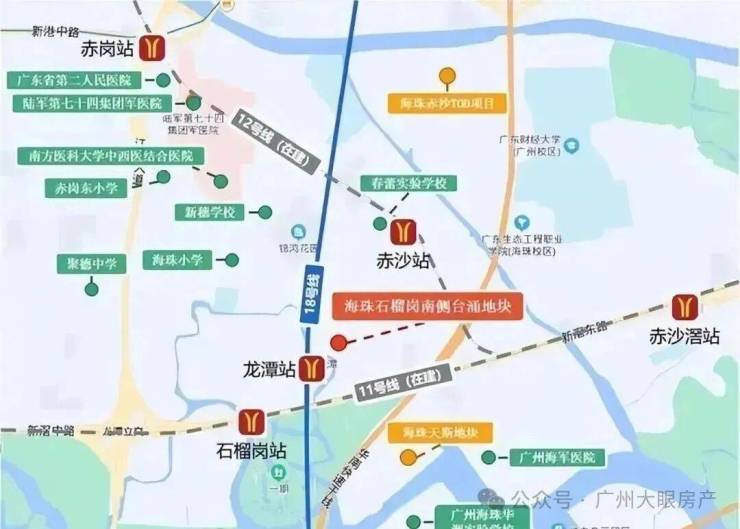 项目坐落于广州中心城区海珠区之心,华洲路旁,西侧为广州海珠湿地公园,南侧邻石榴岗河,距离地铁11号线(在建)和18号线换乘的石榴岗站约1200米,距离琶洲南TOD不到两公里。