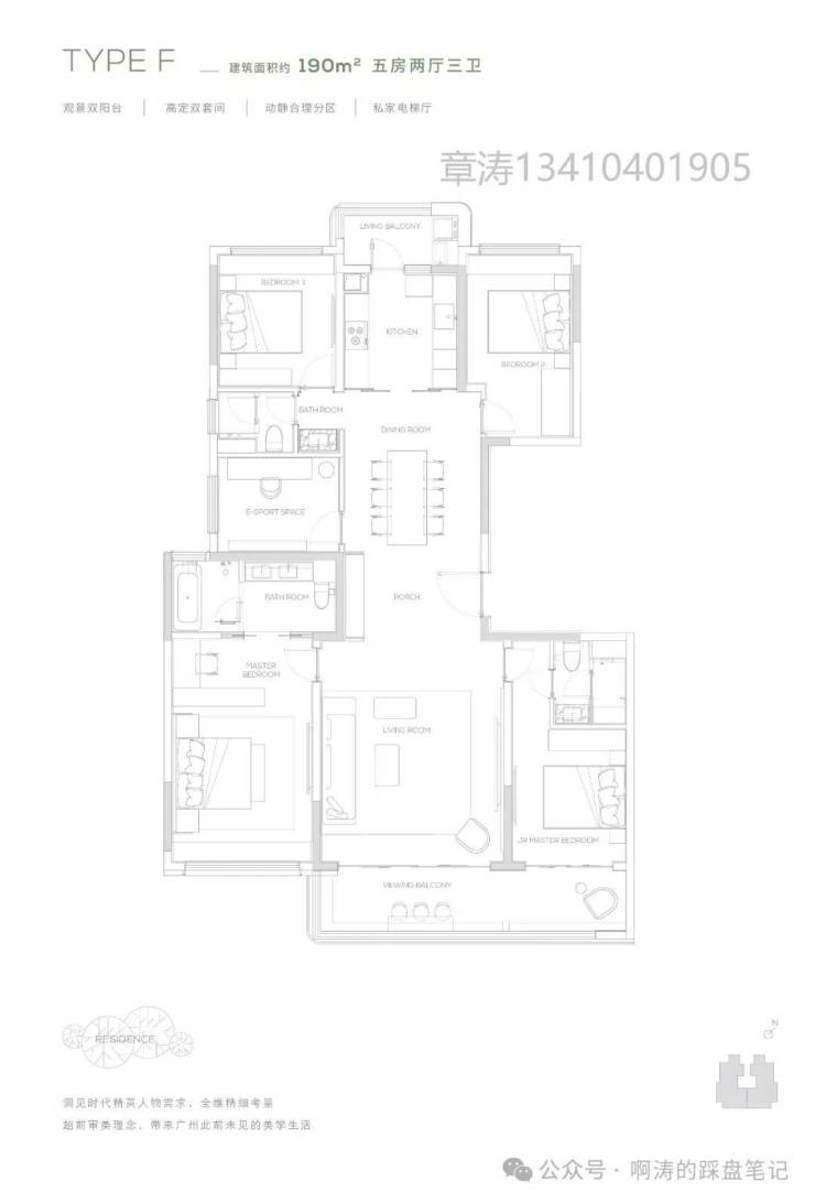 【190㎡双阳台户型】观景双阳台-高定双套间-私家电梯厅-双洄游动线