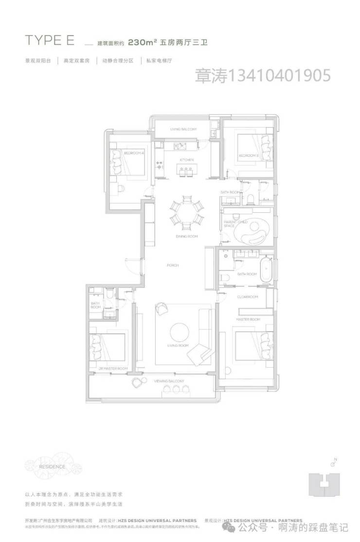 【230㎡户型】观景双阳台-高定双套间-私家电梯厅-双洄游动线