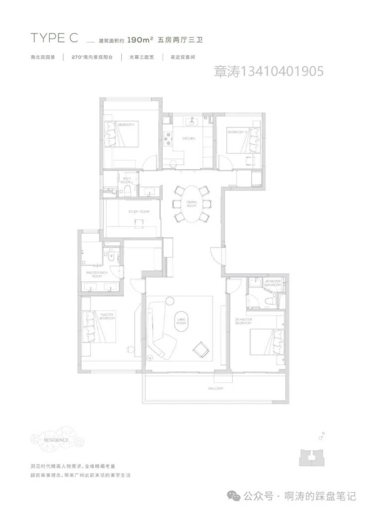 【190㎡户型】南北双园景-光幕三面宽-270度超广角观景视野-经典四叶草布局