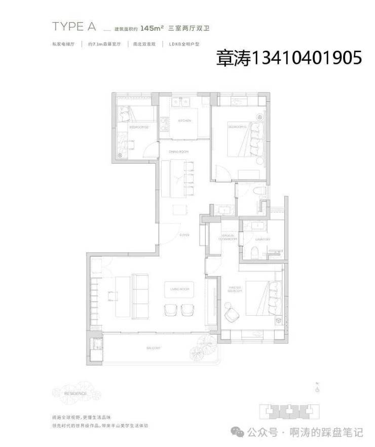 【145㎡户型】独享私家电梯厅-约7.1m²森幕宽厅-LDKB全明户型