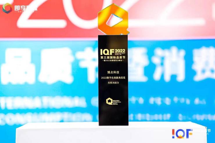 8月31日,IQF2022第三届国际品质节暨2022全球消费领导力峰会在北京举行,活动汇聚全球超过300余家质造品牌。当天,“2022年度品质奖”隆重揭晓,博点科技凭借行业先进的品质实力和突破创新能力,荣获“2022数字化创新典范奖”。