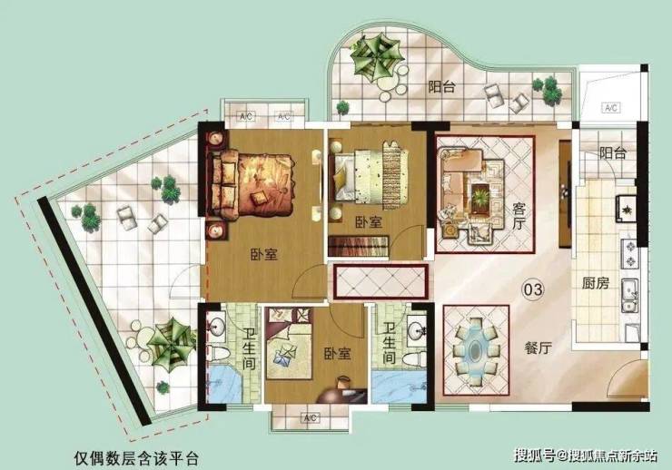 户户配置弧形外飘阳台,自拥超宽的观景“空中花园”,弧形外飘观景阳台宽达约 3.6-7.2 米,使每个住户享有更饱满的景观感受和舒适的生活环境。
