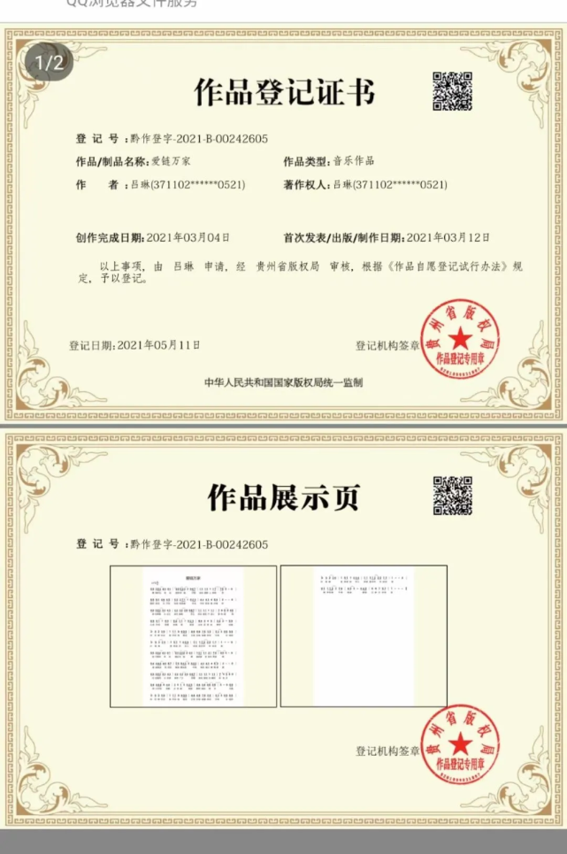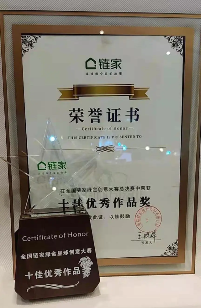 2021年2月链家举办了“绿金星球创意大赛”,吕琳凭借一首自己创作的歌曲——《爱链万家》一举拿下全国链家绿金创意大赛总决赛“十佳优秀作品奖”!