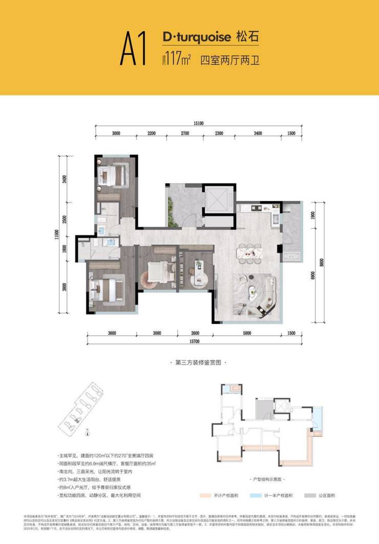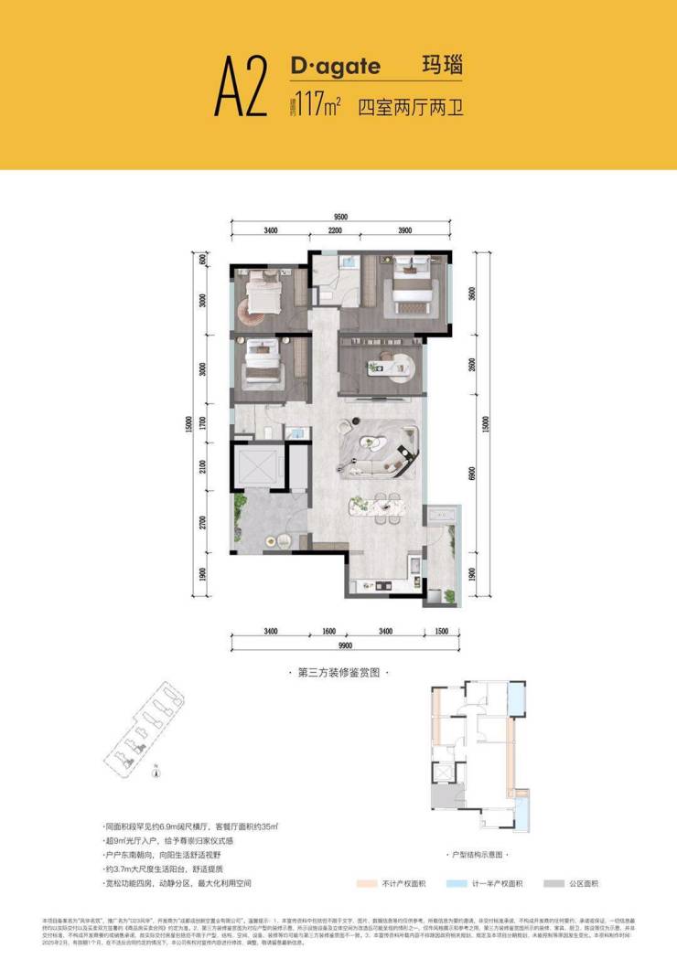117㎡端厅/横厅:270°景观面,LDKB一体化设计,适合年轻高净值家庭;