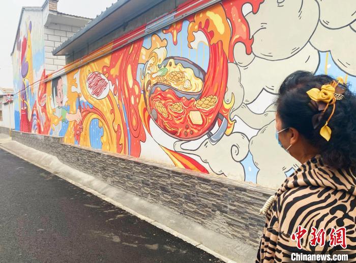 图为甲兰板村北涂鸦的墙壁吸睛。 张玮 摄