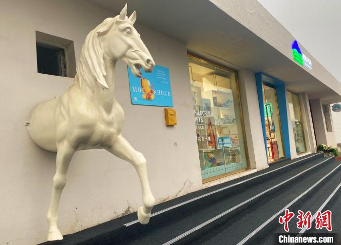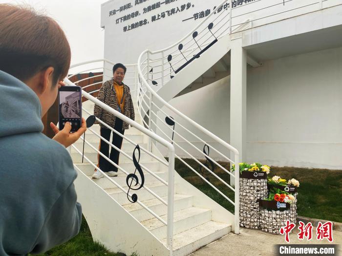 图为处处洋溢着音乐艺术的马头琴小镇吸引游客打卡拍照。 张玮 摄