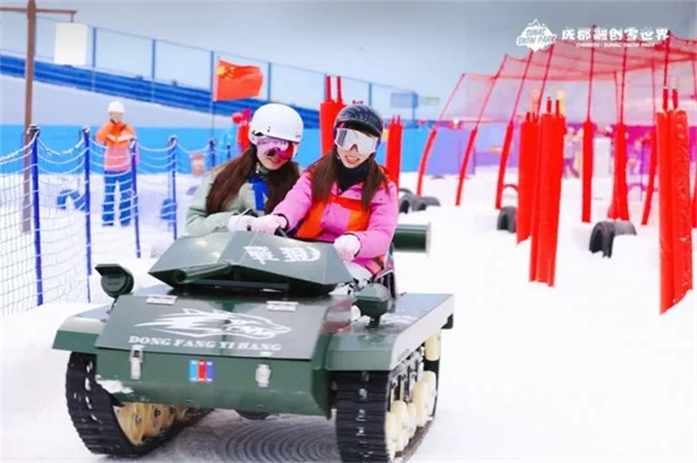 全球较大室内“蜀文化”滑雪场——成都融创雪世界,总建筑面积8.08万㎡,拥有6条不同等级的雪道和2个地形公园,雪道总长度1200米,较大落差60米,较大坡度21°。无论你是小白还是成都雪世界的“谷爱凌”,都能找到自己的娱乐空间。