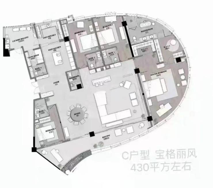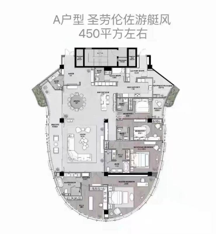 项目占地面积约12456平方米,建筑面积高达94981.5平方米,容积率6.0,绿化率虽仅为20%却巧妙布局,营造出都市中的绿洲感。由A、B两座27层的塔楼傲然挺立,户型面积约为440至450平方米,价格区间在1700万至2000多万之间,每一层都享有3.4米的超凡层高,总户数123户,尊享4梯3户的奢华配置。 装修标准高达1.5万/平米,风格多样,01户型以宝格丽为灵感,奢华而不失温馨;