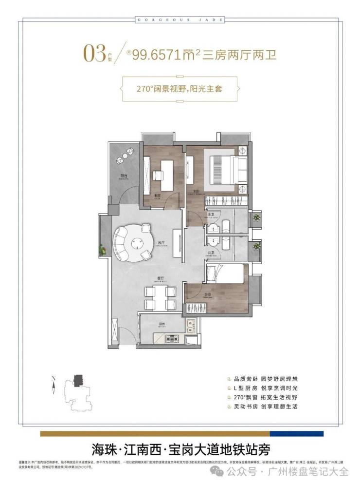 1 公里内集广百新一城、富力海珠城、万国广场、乐峰广场等多个区域标杆商业,配套成熟, 生活便利!