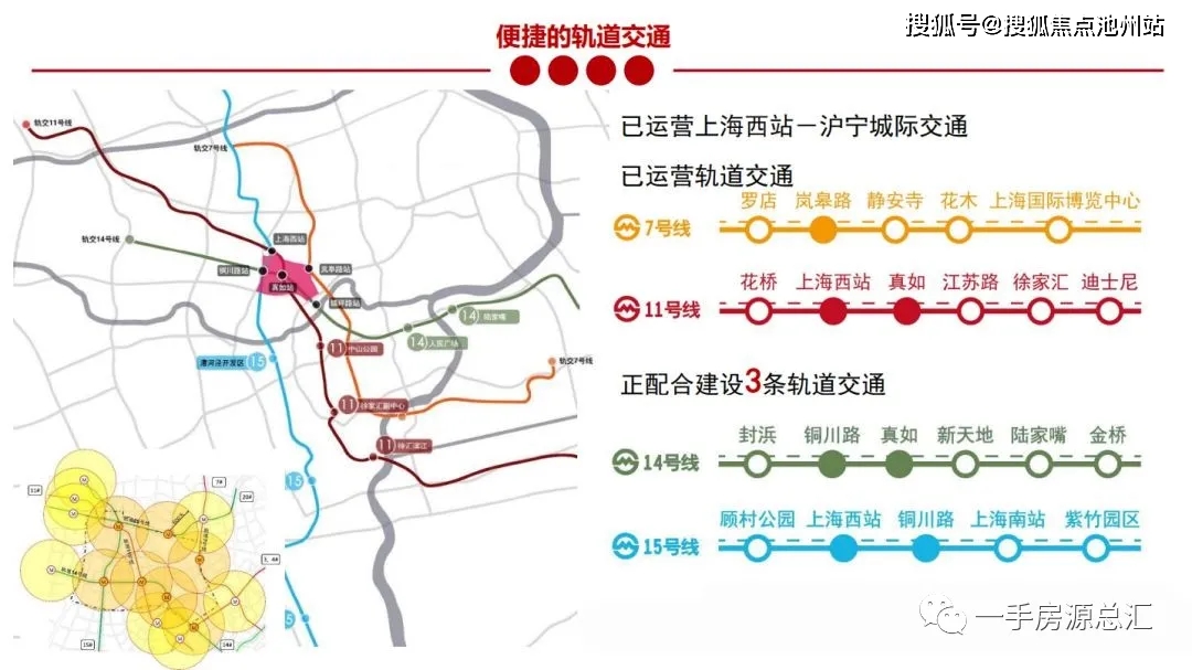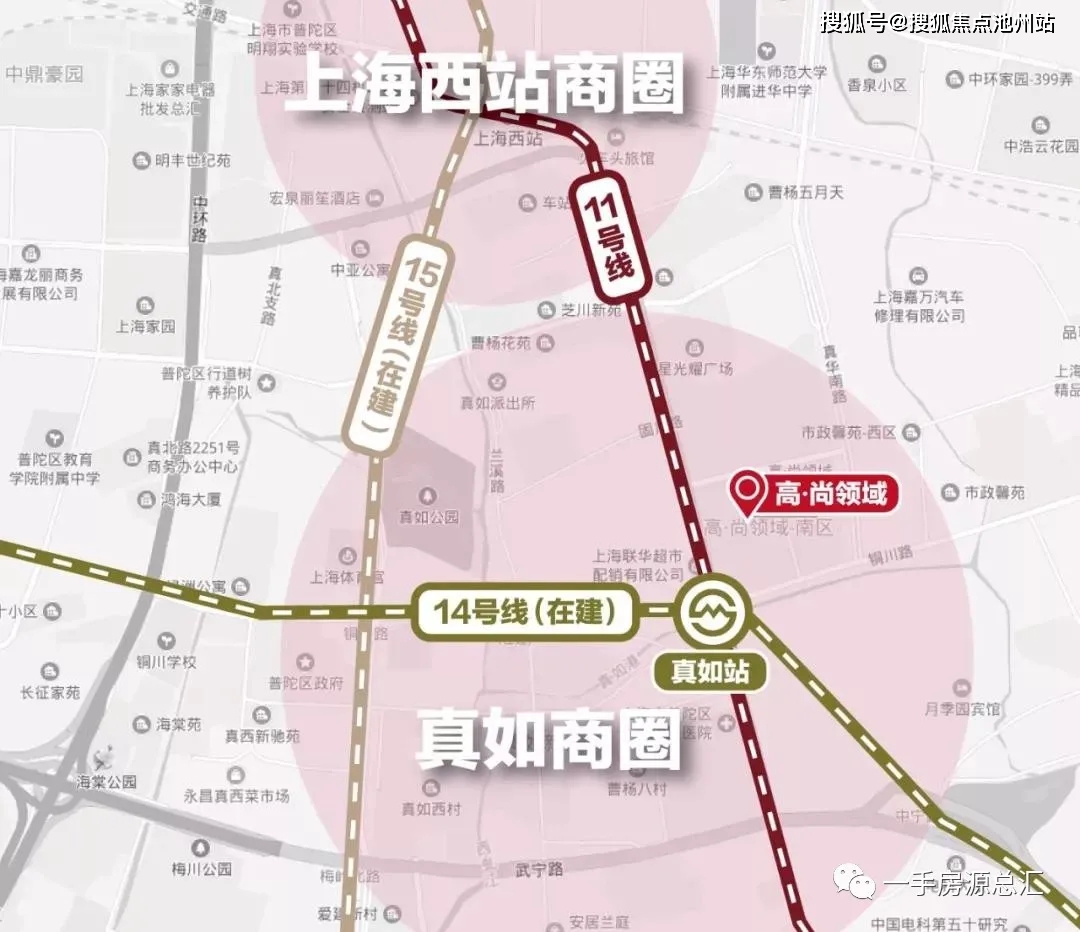 真如站:11和14号线相交,真如副中心核心上海西站:15和11号线相交,真如副中心北翼铜川路站:14和15号线相交,普陀区政府所在地