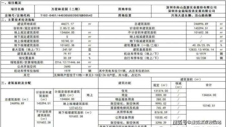万星林花园项目位于前海合作区南山街道兴海大道东侧,沿山路南侧,宗地号T102-0401。根据本项目《深圳市国有建设用地使用权出让合同》及《建设用地规划许可证》,项目总用地面积53819.80平方米,用地性质为二类居住用地;计规定总建筑面积139654平方米,其中住宅131374平方米、商业3000平方米、幼儿园5000平方米(独立占地面积5400平方米,18班)、物业管理用房280平方米;规定容积率≤2.6;建筑一级覆盖率≤40%,二级覆盖率≤25%;建筑高度限高80米;机动车泊位数1979辆;地块内需提供不少于2690平方米公共开放空间。