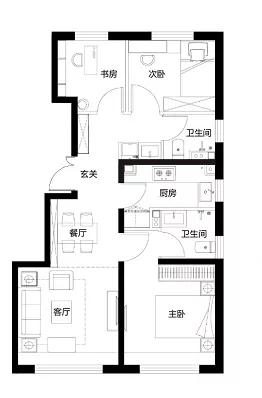 全能型轻巧三居,格局方正,通透全明;私享入户前室,独立功能玄关,彰显归家礼序;尊属主人套房,尽享私密卫浴,空间尺度阔绰;卫生间干湿分离,专业收纳设计,生活自在随心。