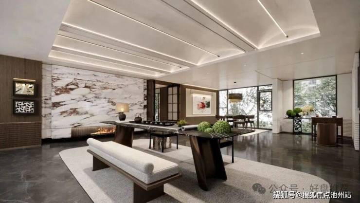 约1400㎡下沉式高奢会所,同频国际标准,超配恒温游泳池、全龄健身馆、养心瑜伽室、闲雅会客厅、自在水吧区,隐于园林之下,金属格栅与光影交织,诠释“隐逸于林,奢享于内”的当代雅仕精神。