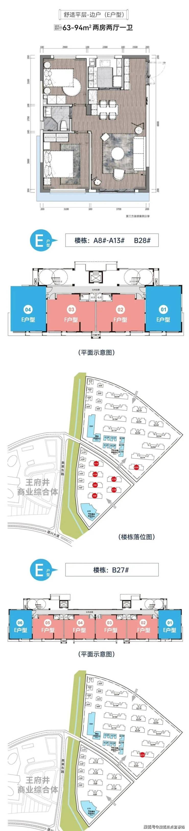 ①舒适平层: 建面约63-95㎡,层高3米