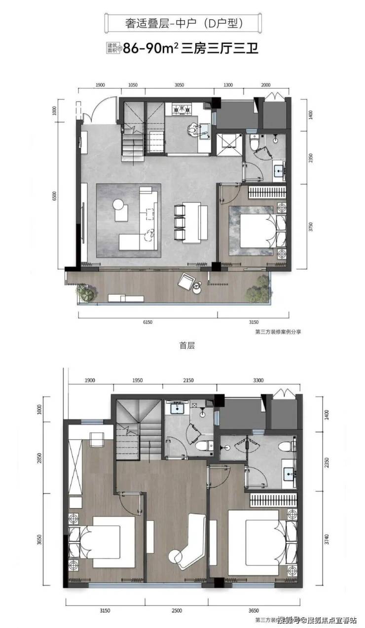 ②奢适叠层:建面约63-92㎡,层高6米