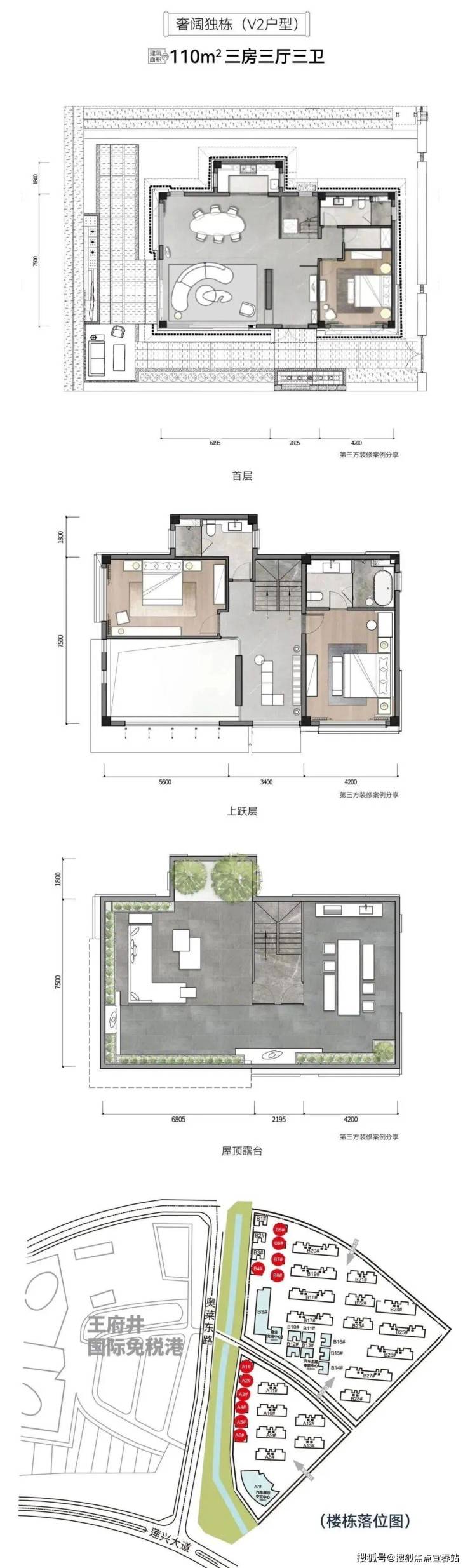 ①上叠:赠送约50-60平米屋顶露台