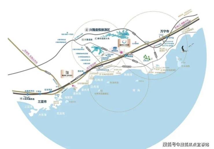 项目位于万宁兴隆温泉旅游度假区、滨海湾区、万宁市区三区交汇处,紧邻交通枢纽,享环岛高速、环岛高铁、三大机场,立体交通网络畅达全岛。