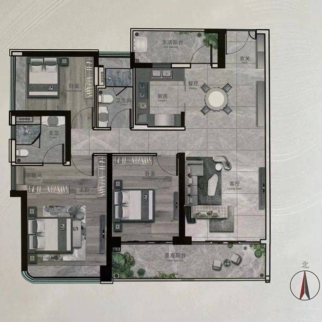 建面约139㎡三房户型图