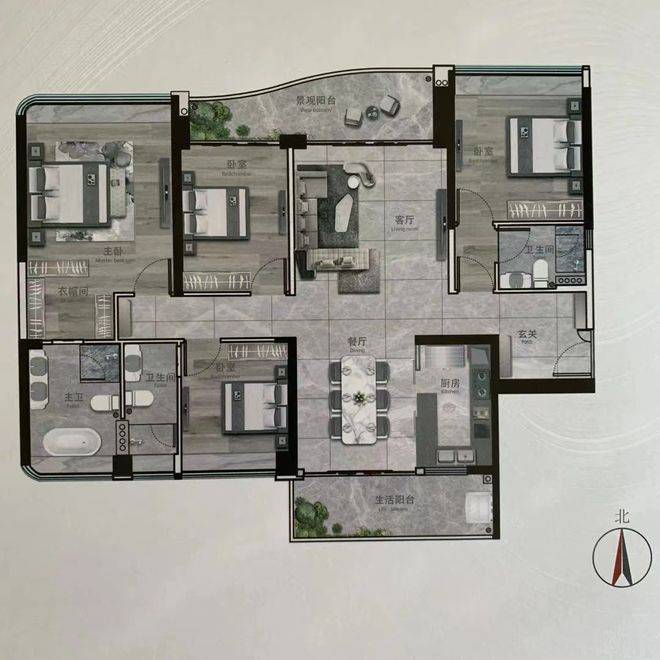 建面约191㎡四房户型图
