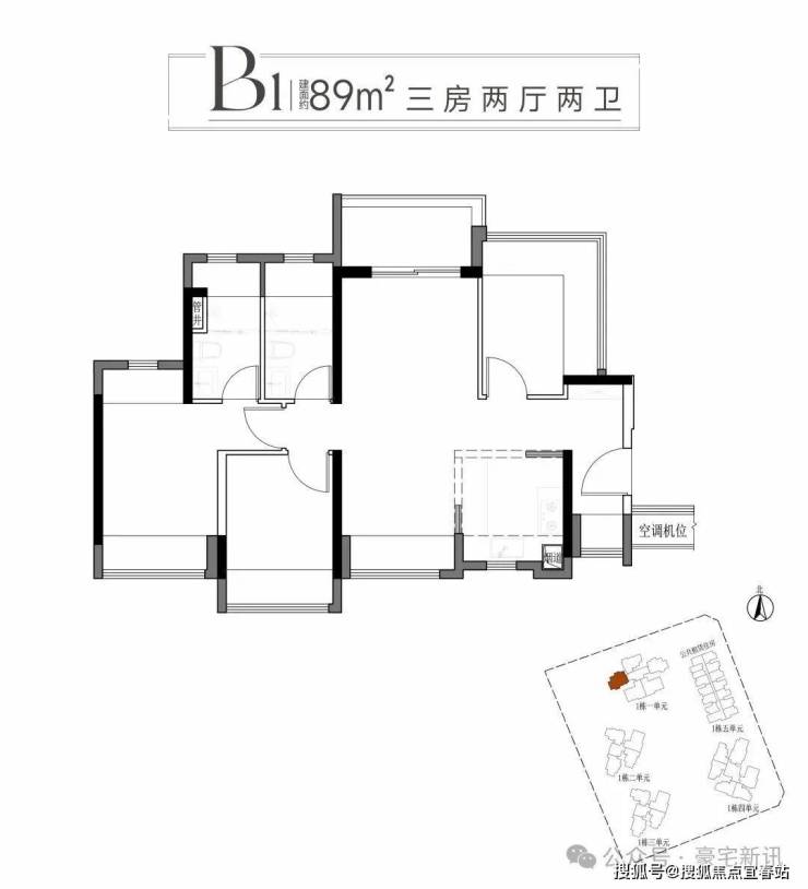 二:建面约89平方B1B2户型三房两厅两卫