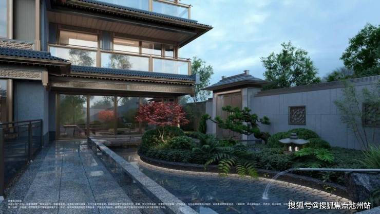 景观园林方面,其设计灵感来源于唐代大师李昭道《曲江图》,营造了七境归家礼序、五景人文意境。