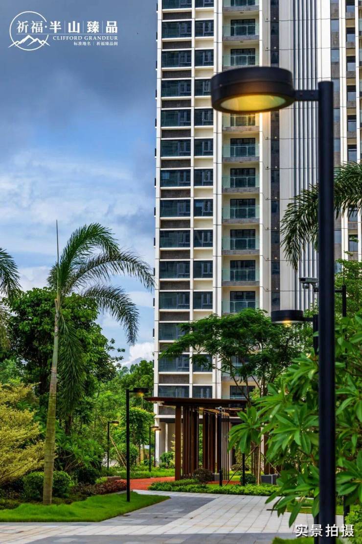【祈福半山臻品】位于祈福新邨内,是祈福新邨最后住宅组团,由3栋楼组成,栋栋间距开阔近百米,视野无遮无挡!半山之上,推窗见林,环境优美,鲜氧环绕;南瞰9000亩大夫山多重山脉,尽揽600亩祈福湖、祈福大城风光+广州繁华都市!
