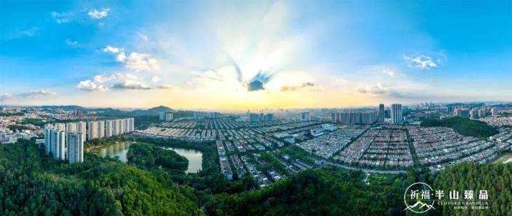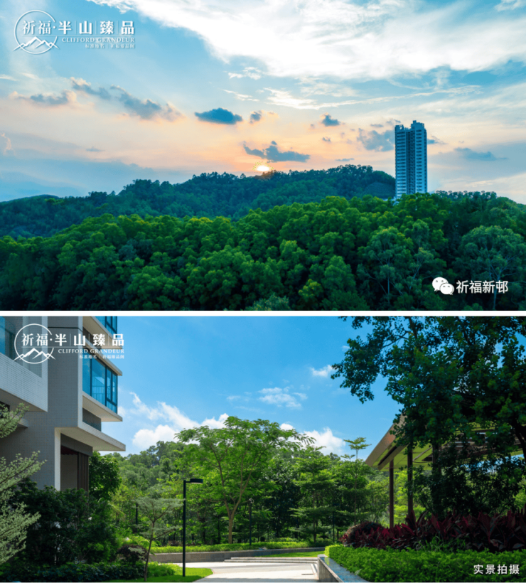 项目位于半山之上,户户均可拥揽山林盛景,繁华与静谧兼得,祈福大城风光+广州都市繁华,景观震撼;