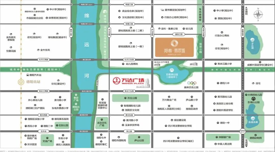 邦泰·翡翠城择址庐山路与澜沧路“黄金”交汇处,位列德阳城市发展热点之上,坐享板块红利!周边交通体系十分发达!项目近距离接驳德阳城北汽车站、德阳火车站、德阳高铁站等交通枢纽,出行十分便捷!