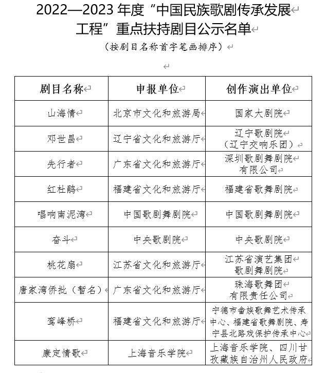 文旅部公示10个2022-2023年度“中国民族歌剧传承发展工程”重点扶持剧目