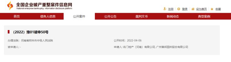 焦点财经讯 耿宸斐 据全国企业破产重整案件信息网消息,名门地产于4月6日成为破产重整申请人,经办法院为河南省郑州市中级人民法院。