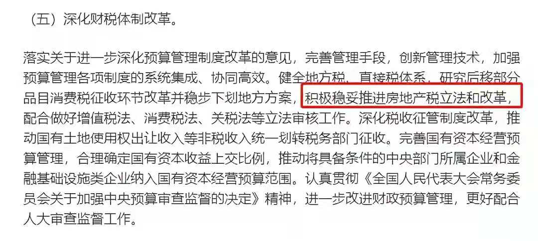 近日,财政部副部长许宏才作《关于今年以来预算执行情况的报告》,透露下一步财税体制改革的重点工作,今年以来,房地产税多次被财政部提到,要稳妥推进房地产税立法和改革,释放的信号十分清晰,“积极稳妥推进”,意味着房地产税的推进势在必行。