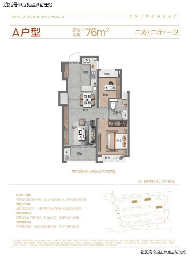 连建面约76㎡2房都能做到创新分户S墙,市面罕见,内嵌收纳,也可将冰箱外移,释放厨房空间,营造合理餐厨动线。