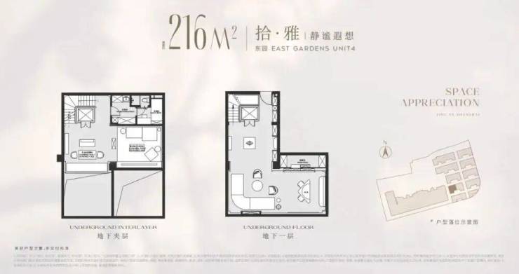 以建面 216平户型为例,地面总高3层,地下一层5.5米带夹层, 地下室面积就达到120m²,另外有露台、花园等,项目平均附赠也达到了约60%!