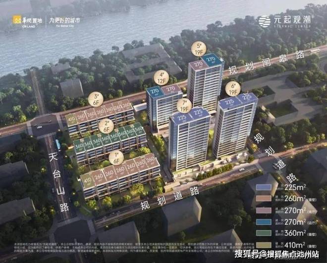元起观潮府由4幢12-19F高层和3幢6F叠墅(两叠/三叠)组成,容积率2.3,高层户型建筑面积约225至270㎡,叠墅户型建筑面积约260至410㎡