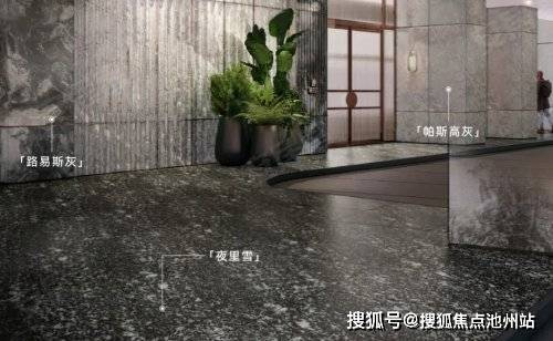 地下大堂地面及墙面选用了 “夜里雪” 、“帕斯高灰” 、“路易斯灰” 大理石等多种珍稀奢石,每一块石材都经过精心的挑选与切割,纹理自然而独特。