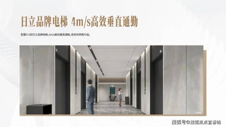 5+1台日立品牌电梯,4m/s高效垂直通勤!满足大规模人流同行,助力企业高效办公