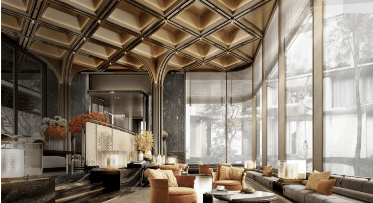 绿城玉海棠园林规划精致,以岭南园林风格为核心,邀请著名园林设计大师宋淑华主笔,参考南京金陵月华、苏州玫瑰园等案例。社区内部通过引园入园理念,利用大树造景、叠水设计及立体景观,将中央公园意境延伸入社区,营造自然绿意与私密感。约50米恢弘门头、超规格大乔木及移植树木,形成藏而不露的景观空间。下沉式大堂及水院景观,使居住者在日常生活中能够沉浸式享受园林景致,实现自然与建筑的和谐共生。