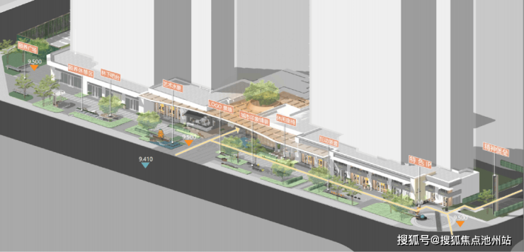 街区的气质是住宅的封面,传递了生活的格调与品质。汀澜和著通过舒展的外围界面,将内、外景观实现了无缝衔接,又将“自然”与“功能”结合,“烟火”与“艺术”融合,一条不长的街道, 却有着“感知”-“探寻”-“惊喜”-“焕发”的多重感受,那些不愿囿于自家楼下的活动也能在此展开。