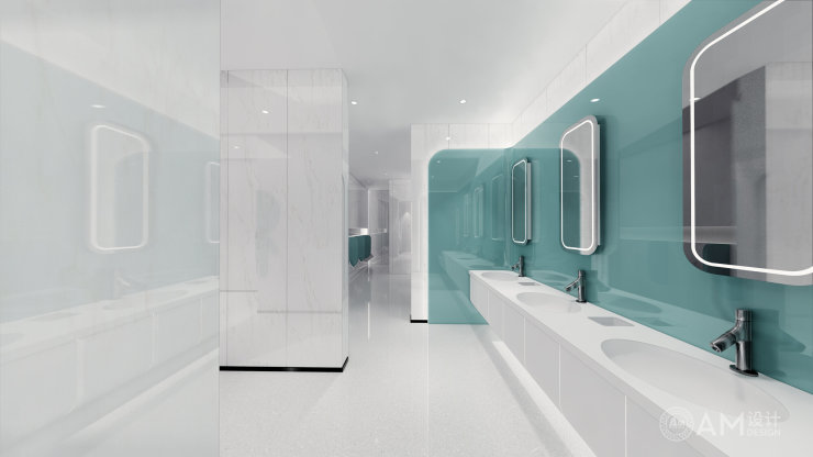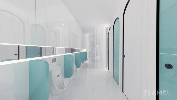 男卫生间大面“青涩”的色块,体现对儿童稚嫩的憧憬,我们更希望孩子可以快快乐乐,无忧无虑。