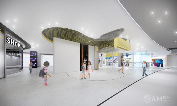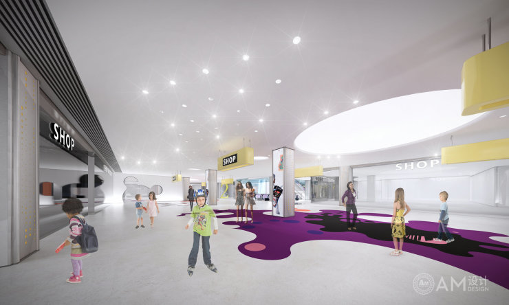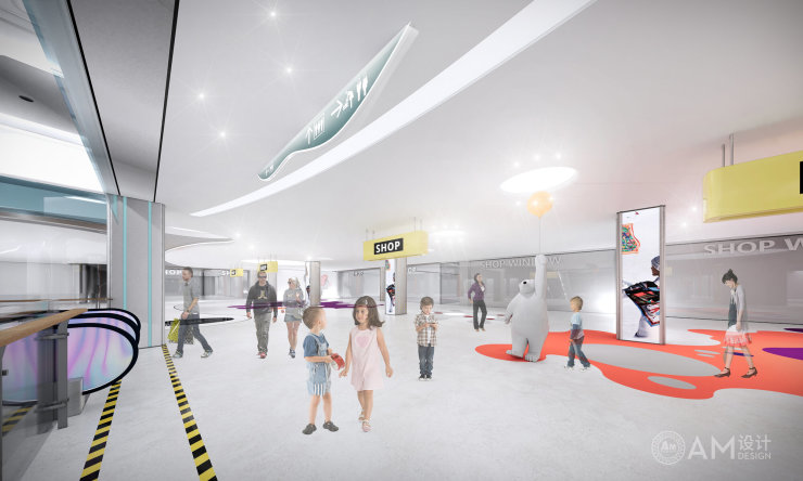 AM设计师从动画片猫和老鼠产生灵感,将巨大的奶酪形状设计为商场入口,进入了儿童的世界。