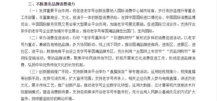 此外,《通知》提到,促进老字号历史文化资源利用。支持相关机构举办老字号文化创意比赛等活动,推动老字号企业利用当地文化馆、博物馆资源,加强对品牌文化、地域民俗、城市记忆的挖掘转化,开发更多蕴含传统文化、富含时尚元素、符合当代需求的产品和服务。